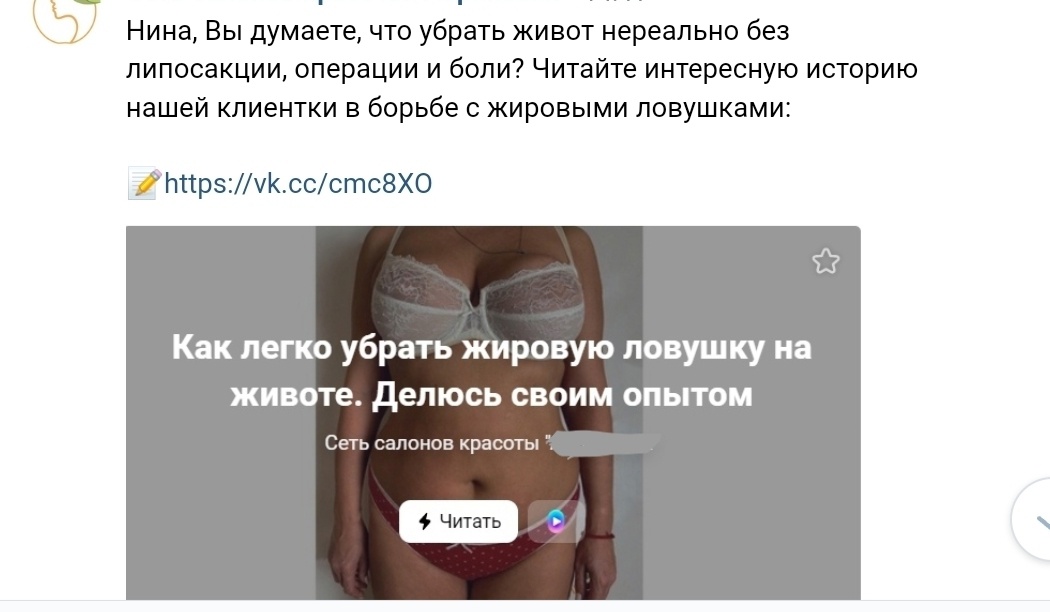 Далее, если по какой-то причине, клиентка не записывалась, ее «прогревали» рассылкой с полезными статьями о похудении